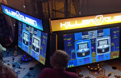 Players will need to register their cards one time to save the card's ID to their kqhivemind.com account. Then they can log in and log out with a simple tap and button press to save their stats. The lights show which positions are currently logged in. Players can log out by pressing the illuminated button.