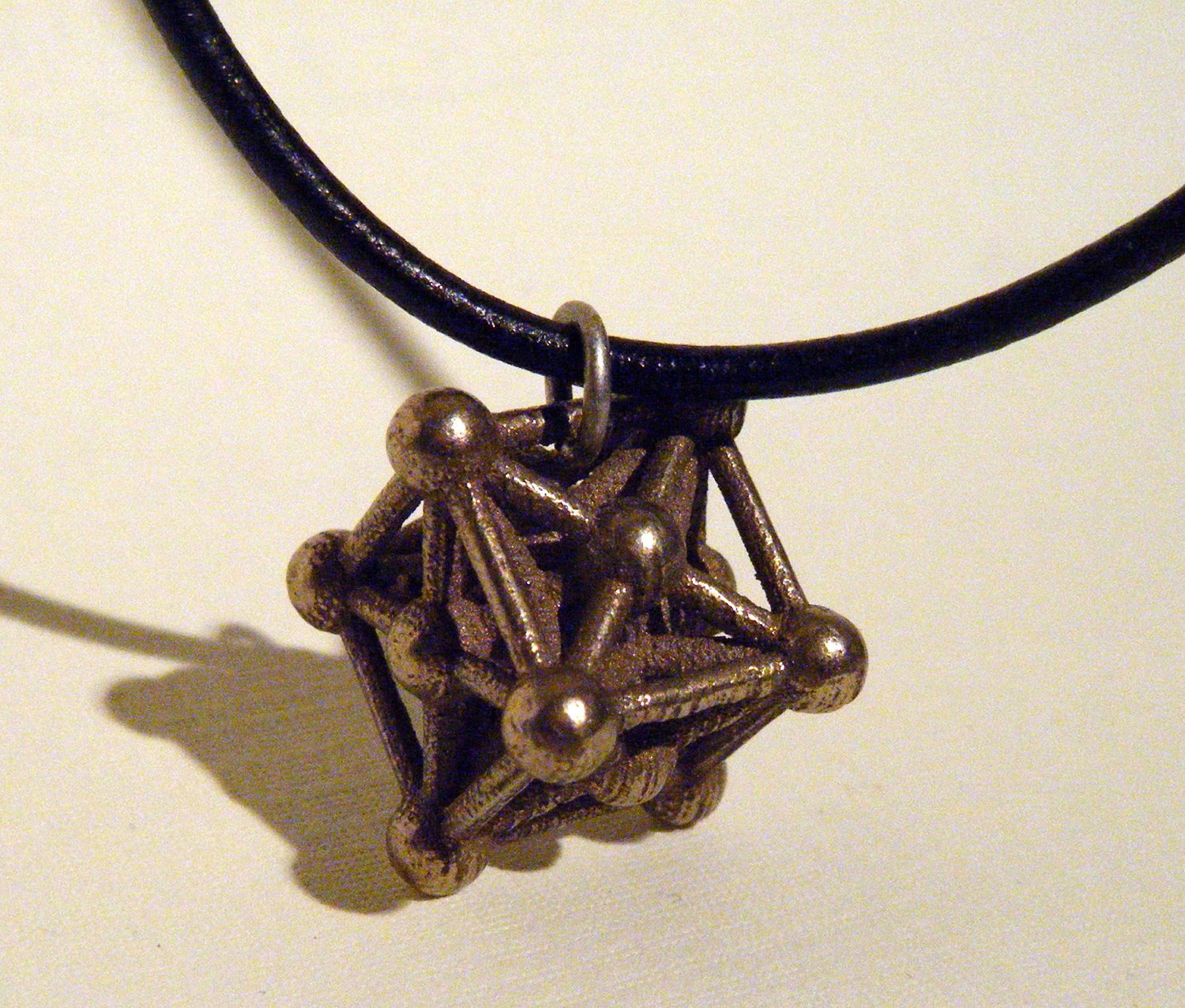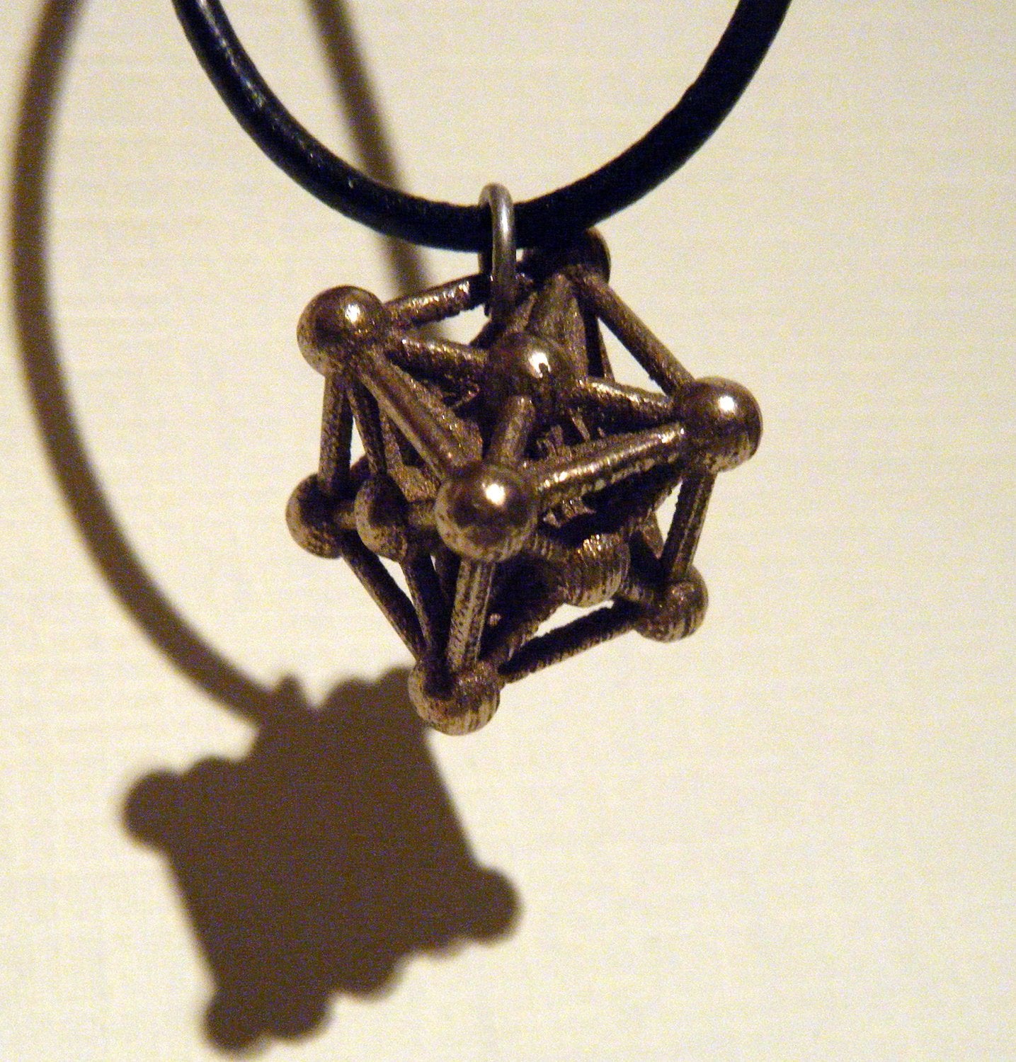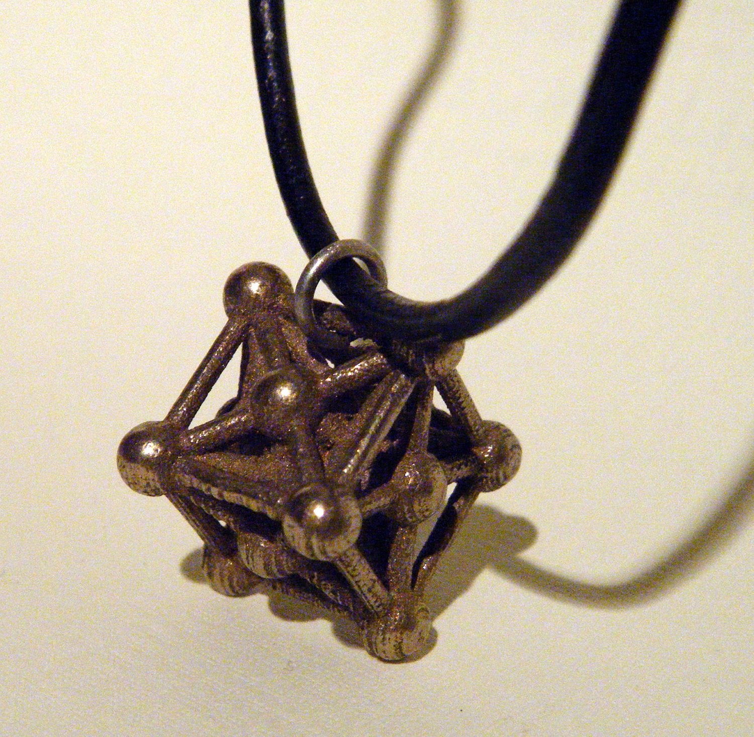 A figure in sacred geometry. This shape contains all of the platonic solids. This is an accurate representation of the 3d version of the mystical shape known as Metatron's Cube. It was recreated in 3d from ancient drawings of the orthographic projection of the shape. Each sphere is connected by a line to every other sphere. This is the only physical version of Metatron's cube I've ever seen, and I don't believe it exists elsewhere. To capture all of the detail inside of this piece, there is no other method to manufacture it besides 3d printing.